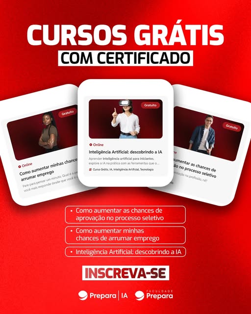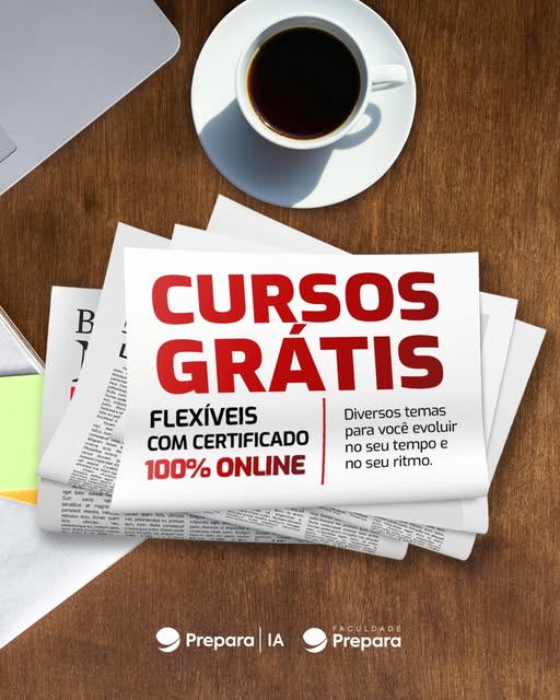 Os cursos gratuitos estão disponíveis no link: https://prepara.com.br/cursos-gratis/?utm_source=feed_facebook&utm_medium=social&utm_campaign=cursos_gratis